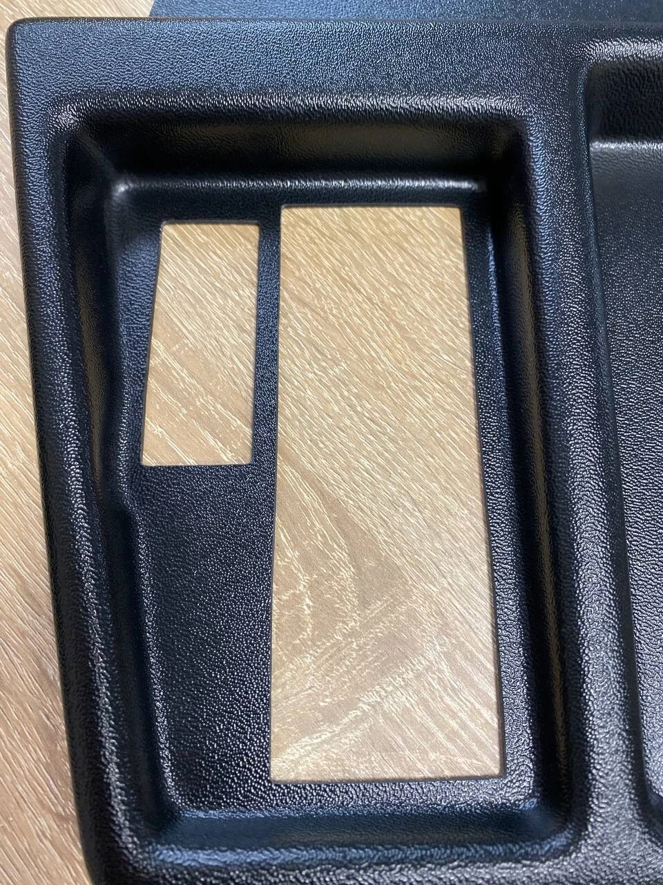 Set the new panel on top of the stock surround and secure (thin automotive double-sided tape recommended).