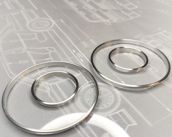 Gauge rings made of aluminum, matte finish, not chrome.